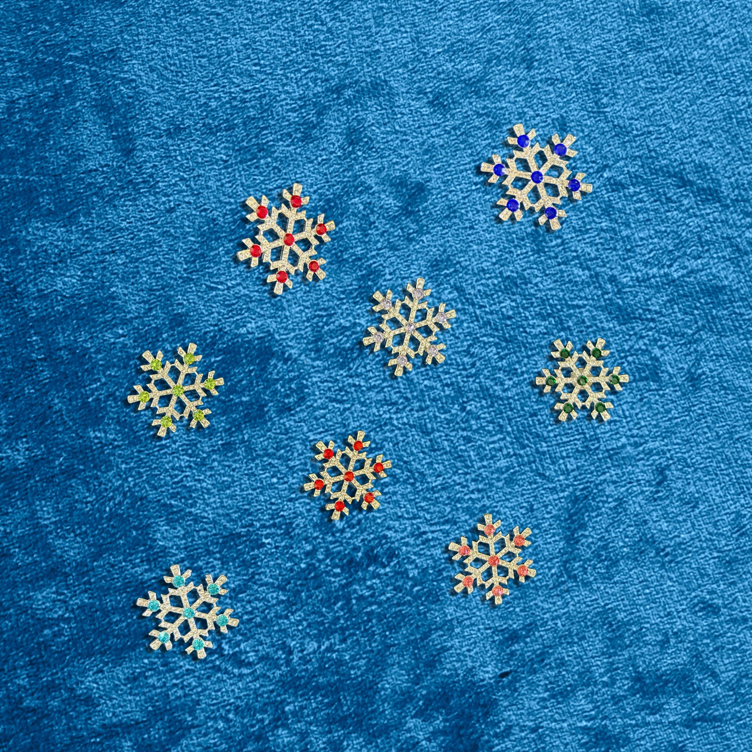 Set of eight sparkly snowflake, magnetic drink gems