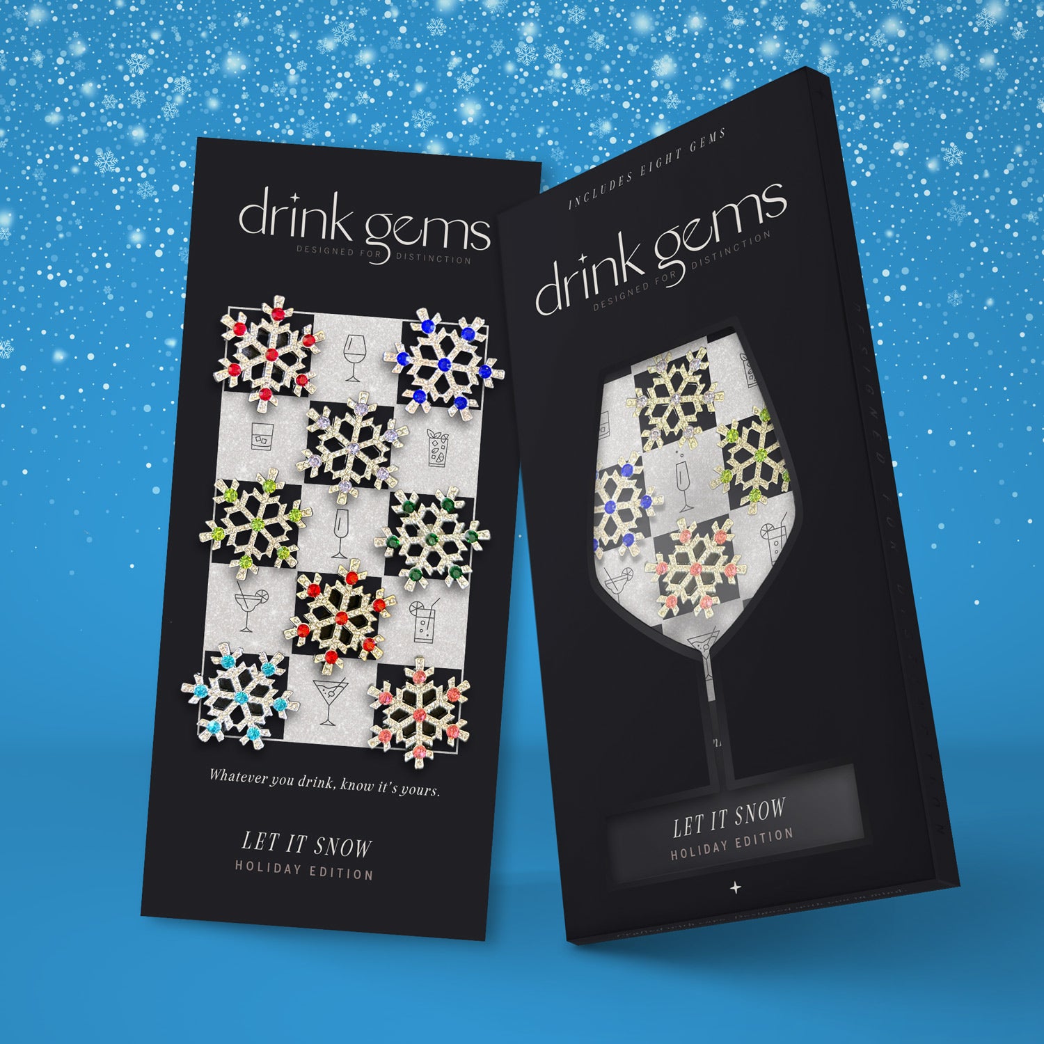 Tired of playing the "Is this my glass?" guessing game? Get ready to sprinkle some serious sparkle on your next shindig with our, Let It Snow - Holiday Edition, Drink Gems!
