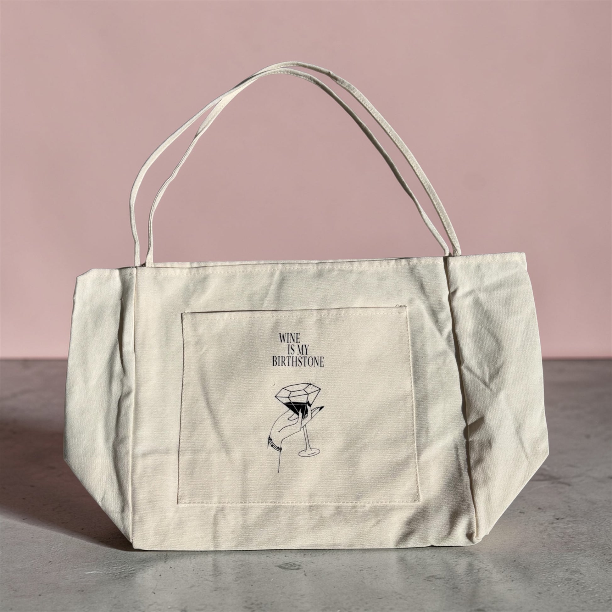 Our Wine Is My Birthstone tote is the ultimate carryall for market mornings, beach afternoons, wine tastings, and everything in between. Designed in classic cream or timeless black, this everyday essential blends effortless style with a playful nod to your favorite ritual.